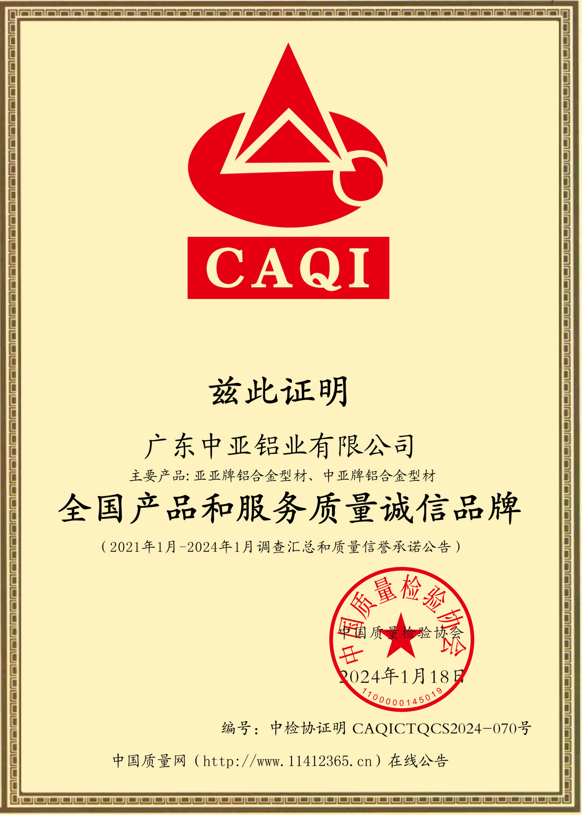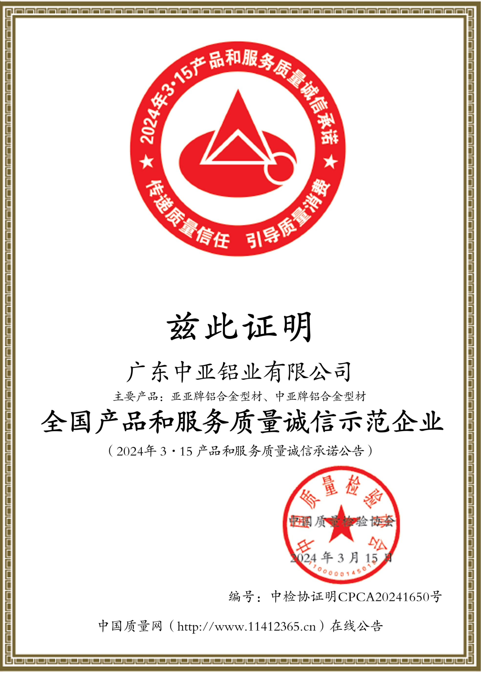 全国产品和服务质量诚信品牌